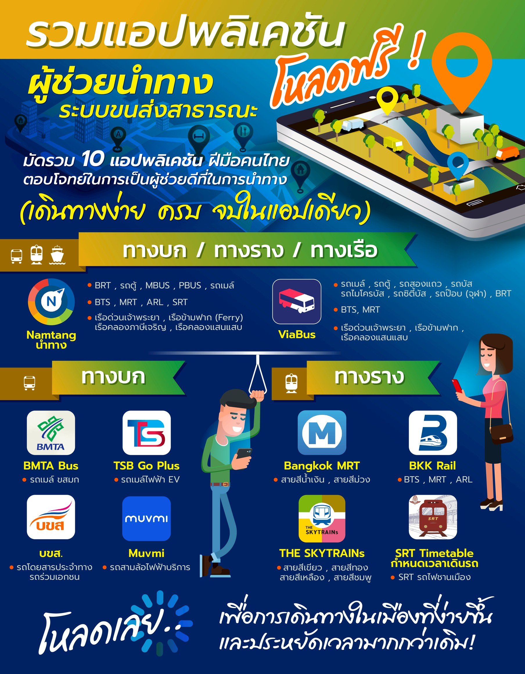 มาทำความรู้จัก 10 แอปพลิเคชันยอดฮิตที่ควรโหลดติดมือถือไว้ ตอบโจทย์ในการเป็นผู้ช่วยที่ดีในการนำทางไม่ให้หลงเส้นทางในการเดินทางด้วยระบบขนส่งสาธารณะ "เดินทางไปได้ทุกเส้นทาง ไม่ต้องกลัวหลงทาง เป็นเพื่อนคู่ใจคอยช่วยเหลือในการนำทางให้คุณ "